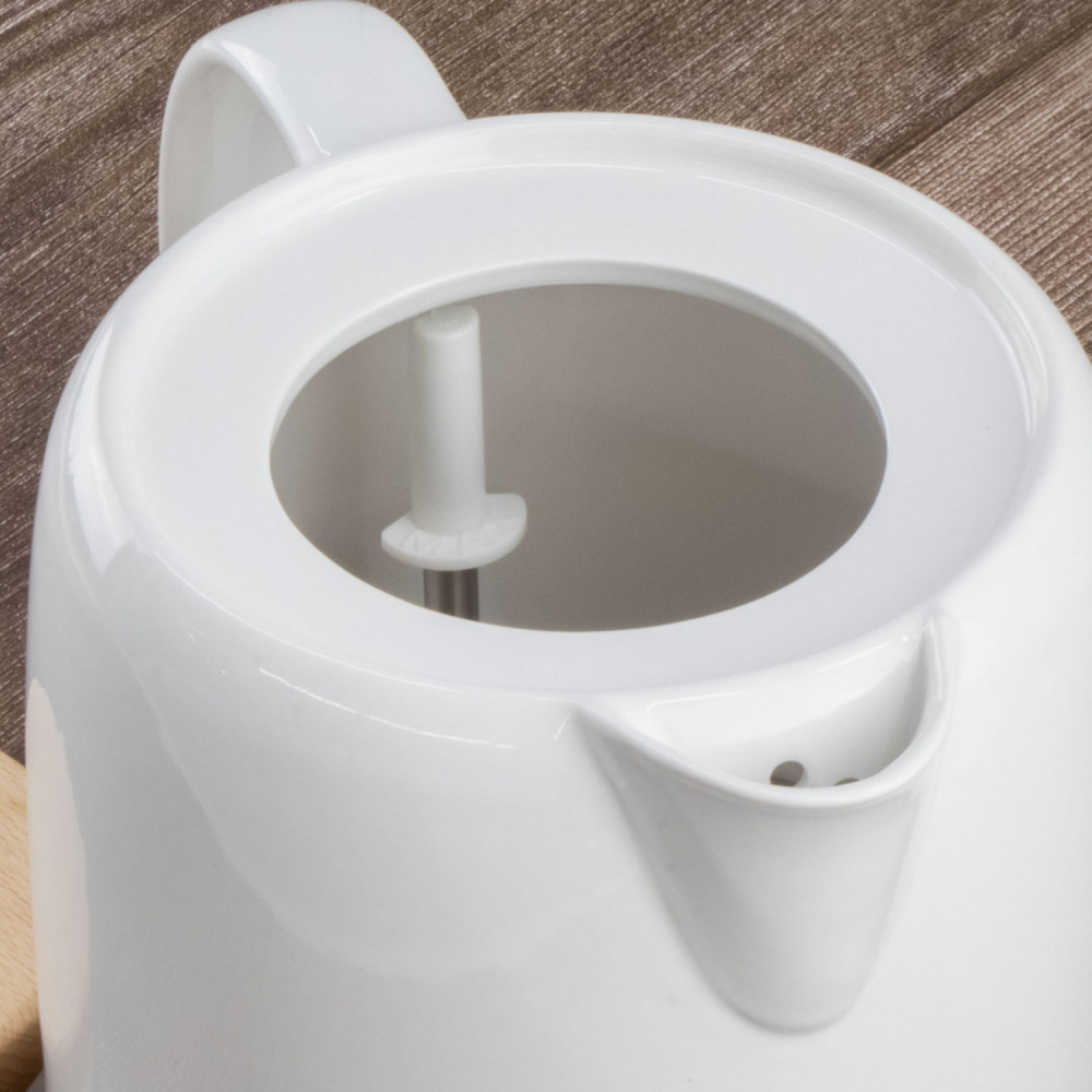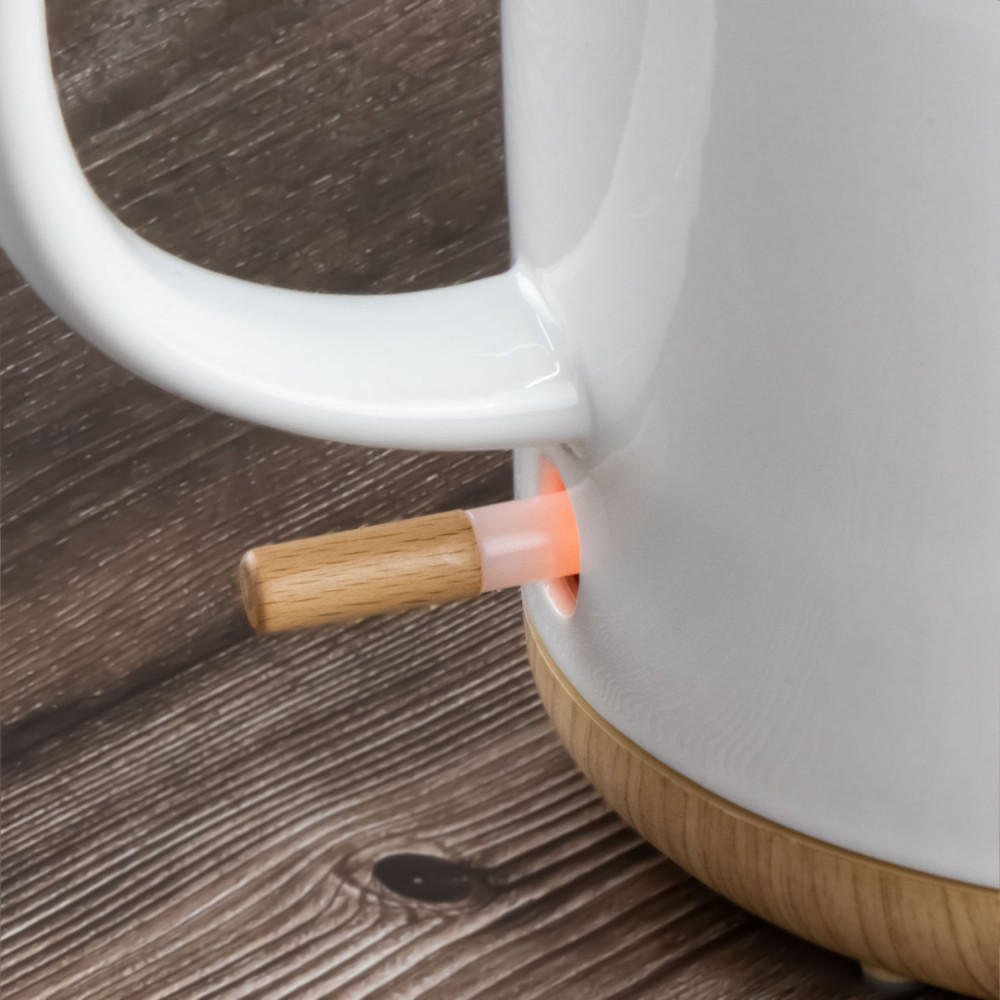 Der Kessel ist nicht nur ein Blickfang, sondern auch besonders benutzerfreundlich und sicher. Dank der umweltfreundlichen Materialien, die bewusst mit minimalem Kunststoffanteil gewählt wurden, ist dieser Wasserkocher eine nachhaltige Wahl für Ihr Zuhause.