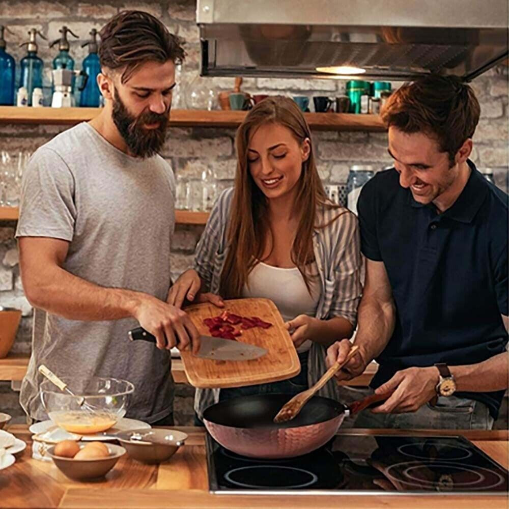 Ganz egal auf welchem Kochfeld Sie kochen, unsere Grill Wokpfannen haben mit ihrem hohen Rand genau die richtige Größe, sodass Sie gleichzeitig auch andere Gerichte auf Ihrem Herd zubereiten können!
