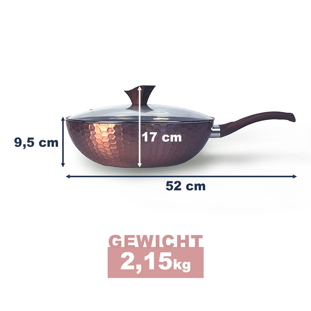 Der Wok aus Aluguss mit Glasdeckel zum Dünsten und Braten von Gerichten aller Art gehört ab heute zum festen Bestandteil ihrer Küche!