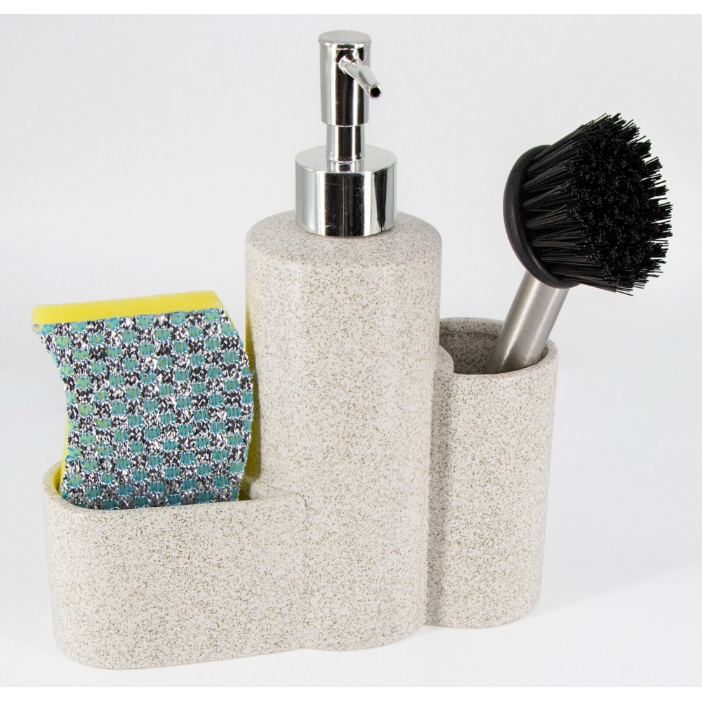 1 x Dosierer aus Keramik mit Schwamm- und Bürste Halterung