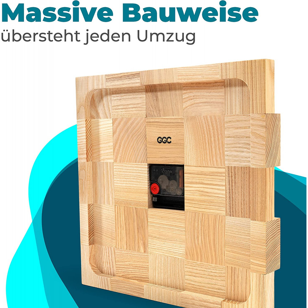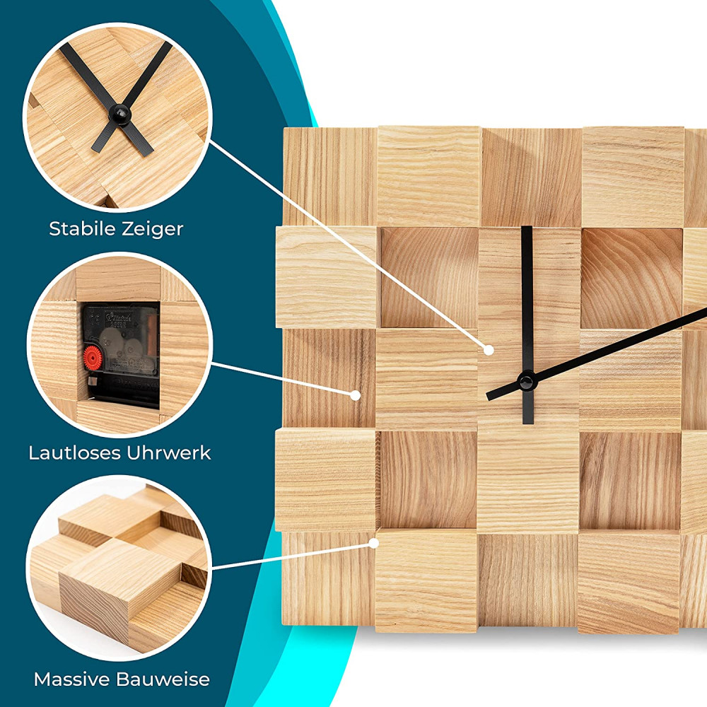 Designer WANDUHR aus ESCHENHOLZ. Die Qualitäts-Wanduhr von KVOTA überzeugt nicht nur durch die einzigartige Holzstruktur, sie ist außerdem dank des Massiven Bauweise (Esche) äußerst robust und überlebt jeden Umzug ohne Probleme!